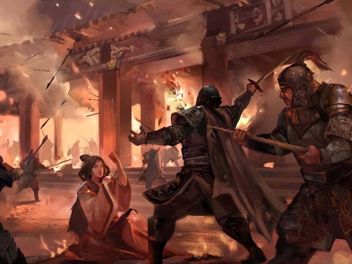 王莽最后退守到未央宫旁边的一座高台上,叫"渐台"。跟他守到最后的,就是几个死忠的大臣和侍从。义军攻上来,箭矢用尽,无力回天。